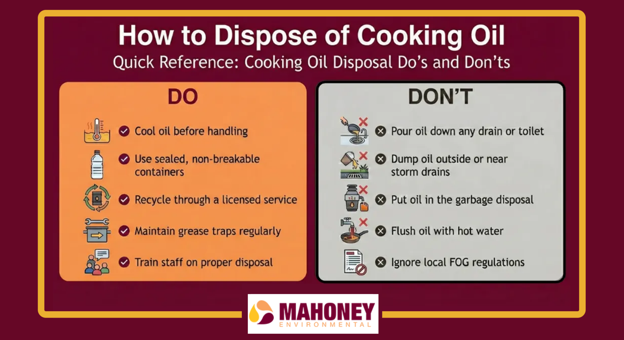 Since 1953, Mahoney Environmental has helped foodservice operations handle cooking oil the right way. We provide: