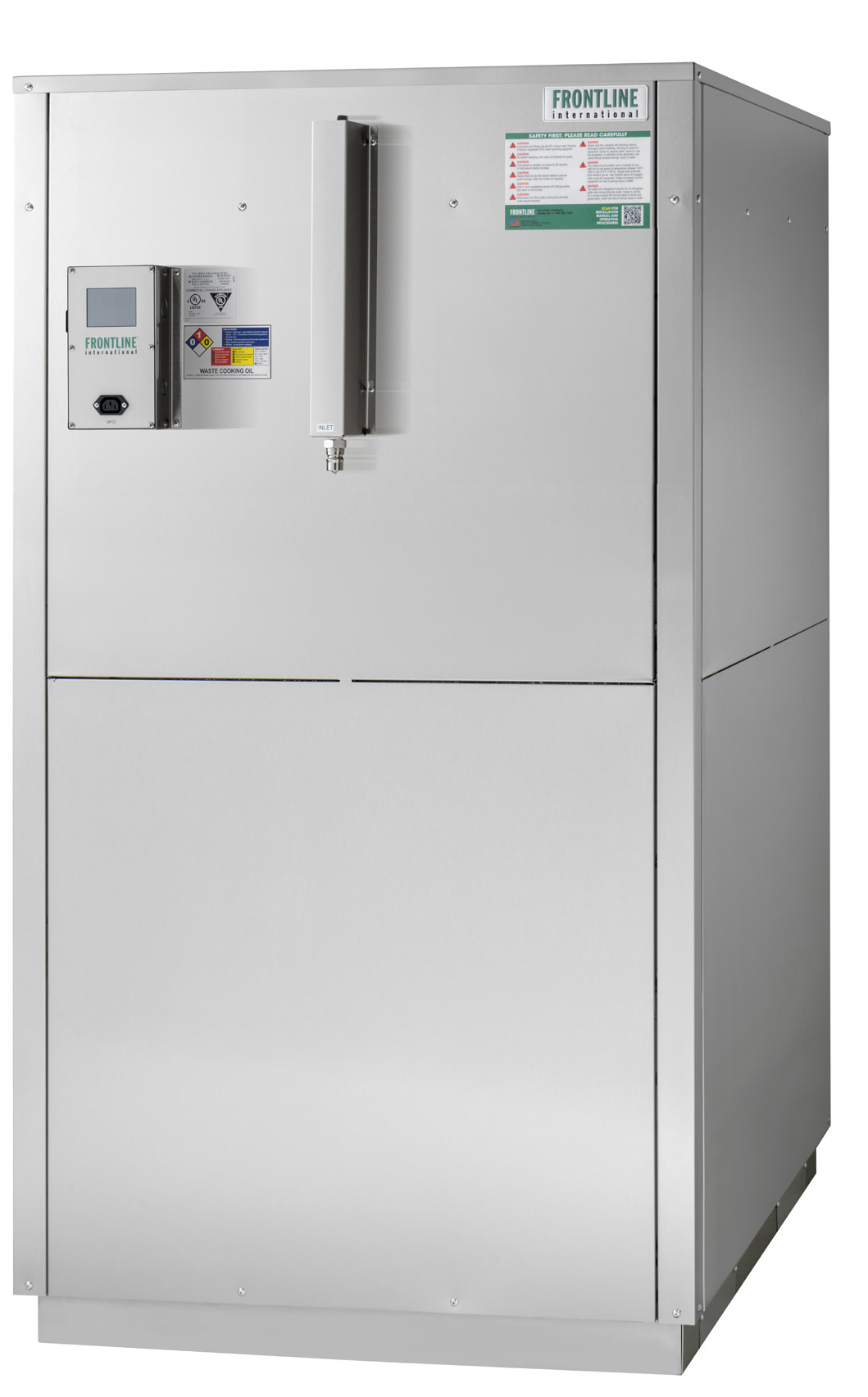 - Heated Outdoor Bulk Container: These containers are installed outdoors, and they are insulated and heated to handle liquid cooking oil and leftover solids. The used cooking oil must be taken to the container from the fryers using an oil shuttle. These containers have a screen over the fill opening to filter debris from the cooking oil and it also has an anti-theft lock to keep it protected. A level sensor can be installed in these containers to monitor the oil levels.